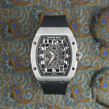 The debut model, the RM 001 Tourbillon, set a new benchmark in the watchmaking world. This two-hand timepiece with a separate power reserve and torque indicator is notably shock-resistant, even for a tourbillon. Its futuristic barrel-shaped case and heavily skeletonized dial set the design standards for future models.